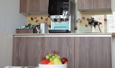 - ein Kaffeeautomat mit diversen Kaffeespezialitäten im Aufenthaltsbereich