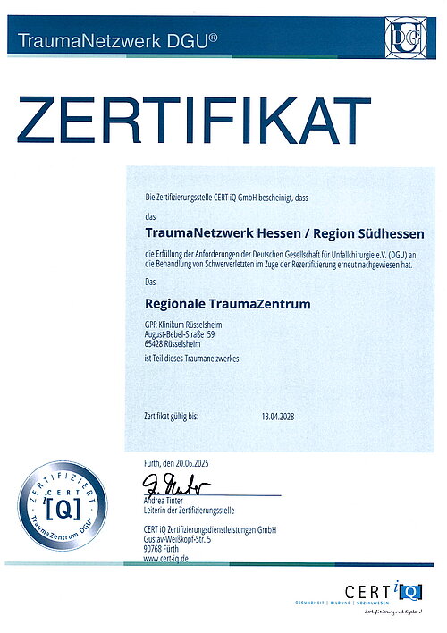 Die Klinik für Unfall-, Hand- und Wiederherstellungschirurgie ist von den Berufsgenossenschaften zur Behandlung von Arbeitsunfällen aller Art (auch bei schweren und komplexen Fällen) zugelassen.