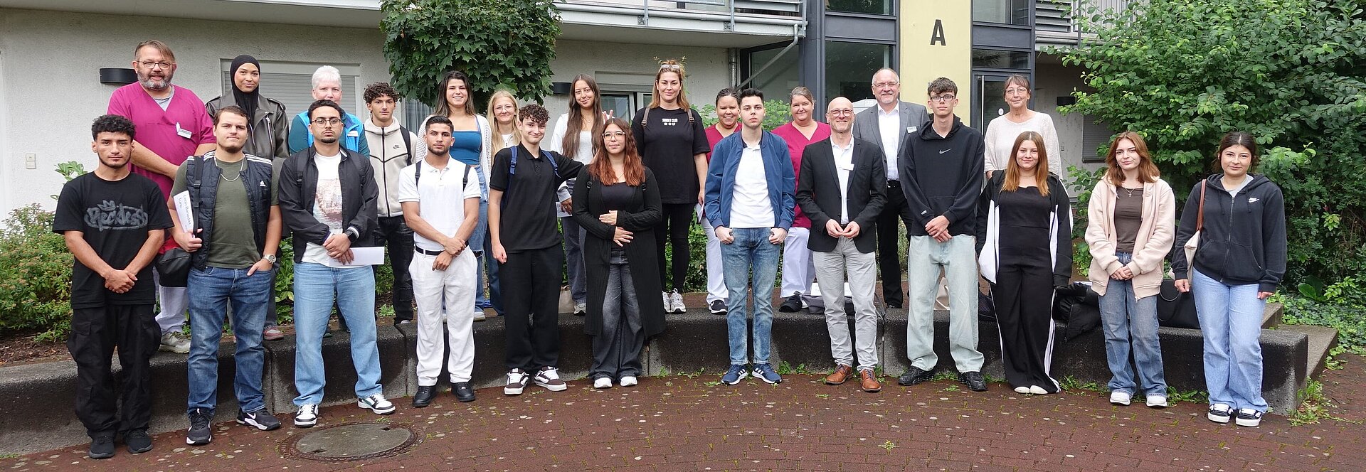 Zur Begrüßung hieß das Schulteam gemeinsam mit Vertreterinnen und Vertretern aus Klinikleitung, Pflegedirektion, Betriebsrat und Praxisanleitung die neuen Lernenden willkommen. Dabei wurde deutlich gemacht, wie sehr sich alle Beteiligten auf die gemeinsame Zeit freuen und wie wichtig es sei, die Auszubildenden auf diesem besonderen Lebensabschnitt zu begleiten.