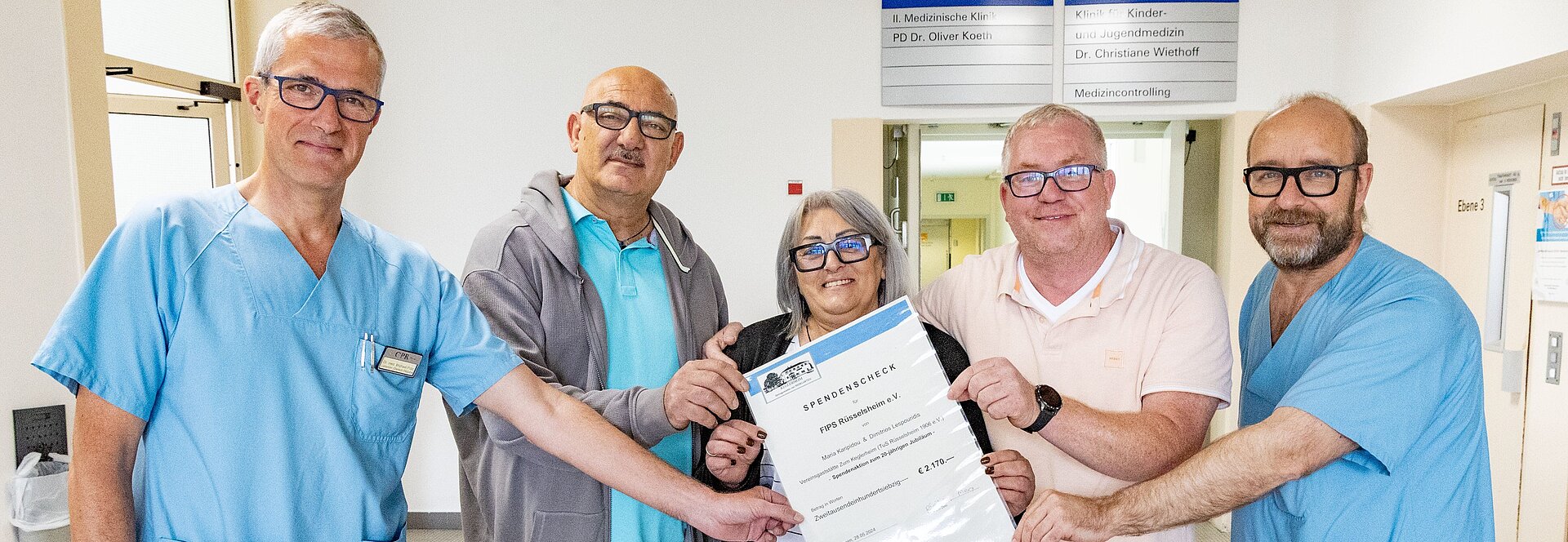 Die Spende geht zurück auf ein Grillfest am 1. Mai, das anlässlich des 20-jährigen Pachtjubiläums des Keglerheims – zugleich Vereinsheim der TuS 1906 Rüsselsheim – veranstaltet wurde. Die langjährigen Pächter Dimitrios Lespouridis und Maria Karipidou hatten gemeinsam mit dem Verein Gäste eingeladen, die Speisen gegen freiwillige Spenden erhielten. Zahlreiche Mitglieder der TuS waren bei dem Fest vor Ort und unterstützten als „Helfende Hände“. Der Erlös in Höhe von 2.170 Euro wurde in voller Summe dem Förderverein fiPs zur Verfügung gestellt.