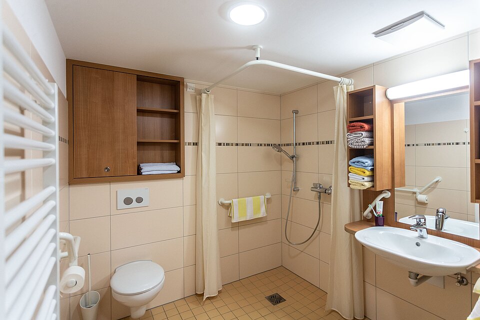 Unser Haus ist in allen Bereichen behindertengerecht ausgestattet. Damit Sie sich in unserem Hause gut und schnell zurechtfinden, wurden die einzelnen Hausgemeinschaften und Wohnbereiche nach hessischen Landschaften benannt. In zehn stationären Hausgemeinschaften bieten wir Ihnen eine familiäre Wohnmöglichkeit. Jede Hausgemeinschaft besteht aus 12 Einzelzimmern und einer sehr ansprechenden und geräumigen Wohnküche. Die Zimmer bieten modernsten Wohnkomfort. Sie sind mit elektrisch höhenverstellbaren Betten ausgestattet, die geräumigen Duschbäder sind behindertengerecht. Überall im Hause gibt es gemütliche Sitzecken, die zum gemeinsamen Spiel oder Plausch einladen.
