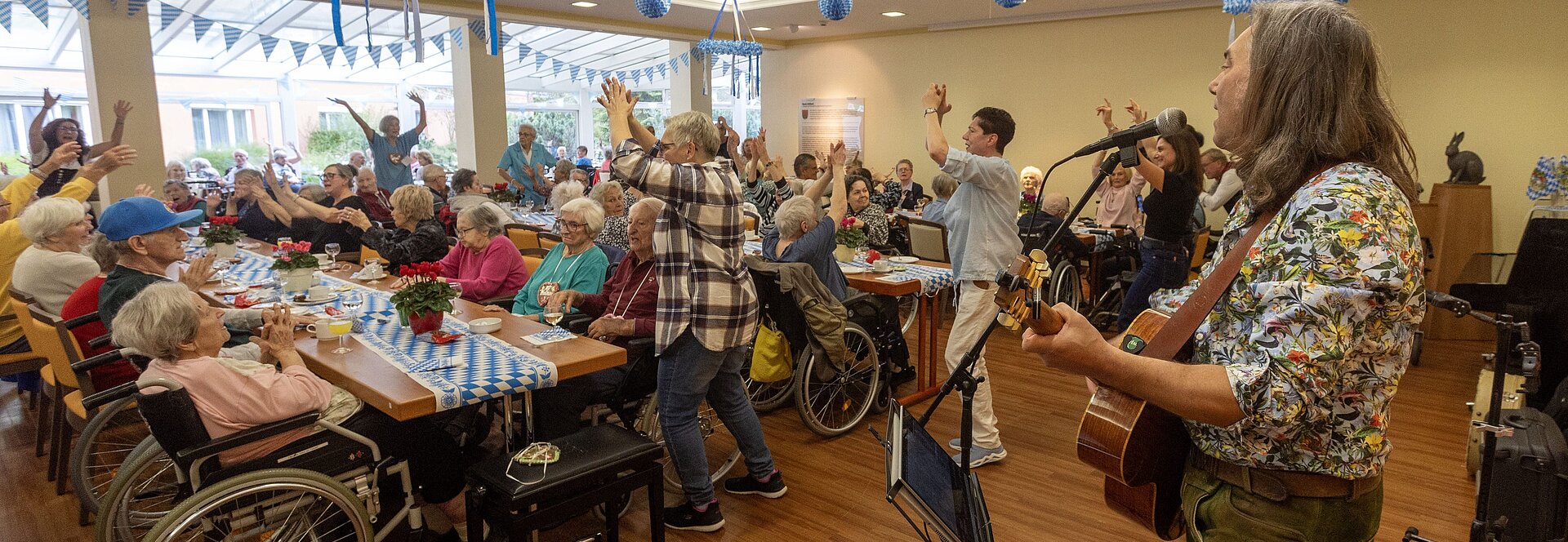 Für die musikalische Unterhaltung sorgte Hansi Schitter, dessen Auftritt das Publikum begeisterte. Der in der Region und darüber hinaus sehr bekannte Musiker schaffte es – wie schon beim diesjährigen Sommerfest in der GPR Seniorenresidenz „Haus am Ostpark“ mit seiner stimmungsvollen Musik, die Gäste zu motivieren und für eine ausgelassene Atmosphäre zu sorgen. Die Bewohnerinnen und Bewohner klatschten fröhlich mit, sangen und ließen – passend zum Liedtext – „die Hände zum Himmel“ steigen. Die Freude und Begeisterung der Anwesenden war spürbar und machte das Herbstfest zu einem tollen Event.