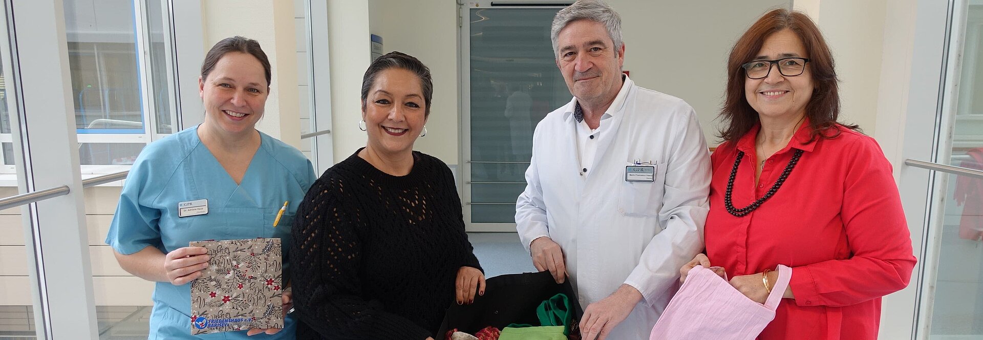 Nach ihrer Entlassung und ihrer Genesung brachte Elif Cugali die Idee beim Friedenshaus e.V. ein, im Rahmen eines Projekts Drainagetaschen zu nähen. Mit großem Engagement fertigte das Team des Vereins 60 Taschen, die nun dem GPR Klinikum übergeben werden.